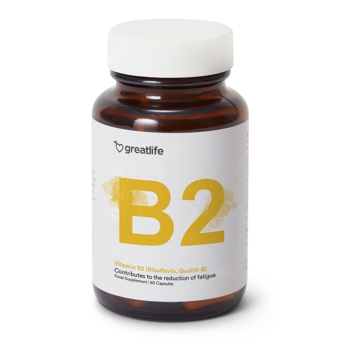 Vitamin B2 (Riboflavin, Quali®-B) von Greatlife ist ein reines und gut erforschtes Vitamin in pharmazeutischer Qualität. Riboflavin spielt eine zentrale Rolle im Energiestoffwechsel des Körpers und ist entscheidend dafür, dass die Zellen Nährstoffe in nutzbare Energie umwandeln können. Es trägt zur Verringerung von Müdigkeit und Ermüdung bei sowie zu einer normalen Funktion des Nervensystems und zu einer normalen psychischen Funktion. Vitamin B2 trägt außerdem zur Erhaltung normaler Haut und normaler Schleimhäute bei sowie zu einer normalen Funktion des Immunsystems und zu einem normalen Eisenstoffwechsel. Vitamin B2 von Greatlife ist ein hochwertiges Nahrungsergänzungsmittel mit sorgfältig kontrolliertem Rohstoff, frei von Zusatzstoffen, Verunreinigungen und künstlichen Substanzen.